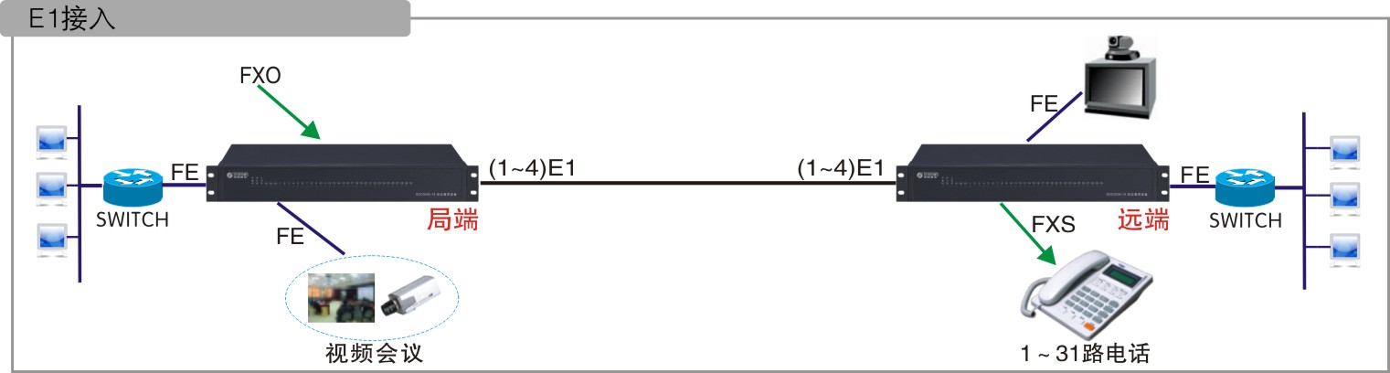 通過多E1傳輸時,采用MP技術(線路負載平衡)將多E1信道捆綁傳輸各種業務