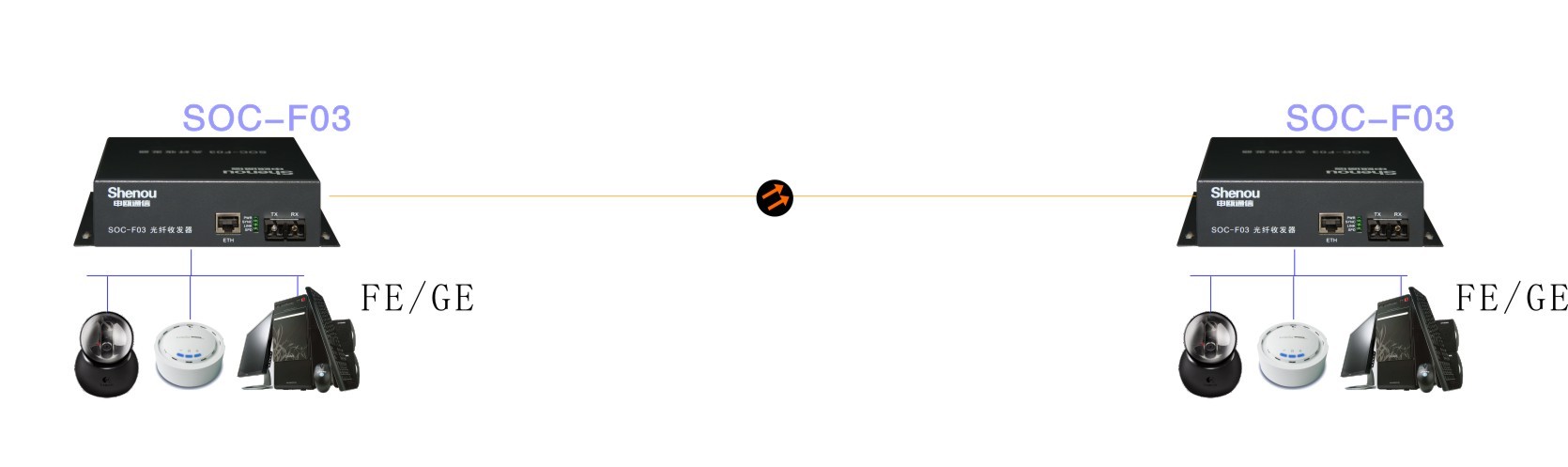 SOC-F03光纖收發器系列產品可用于監控行業,公安網傳輸,網絡視頻傳輸等數據量大的場合。